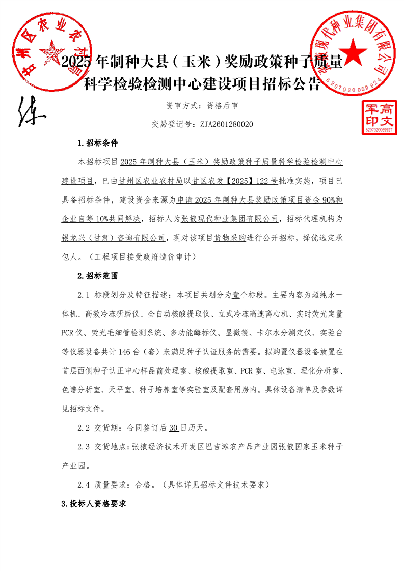 2025年制种大县(玉米)奖励政策种子质量科学检验检测中心建设项目